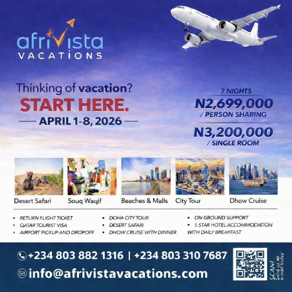 Founded in 2025, Afrivista Vacations Travels and Tours Ltd is a Lagos-based, full-service travel agency. Our vision is to lead as a Nigerian-owned gateway to global experiences, delivering reliable, innovative, and customer-focused services that turn every trip into a lifetime memory.